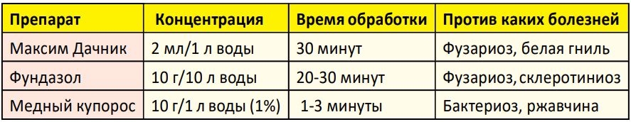 Теперь надо обеззаразить зубки, уничтожив споры грибов, бактерий и личинок вредителей.